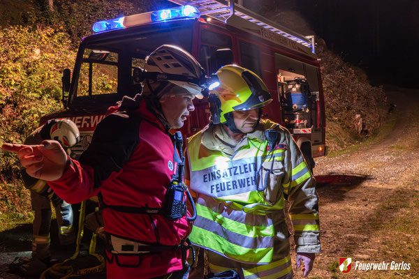 Durch das perfekt abgestimmte Vorgehen der beiden Einsatzleiter – Gerald Dejaco (Feuerwehr Gerlos) und Matthias Bathelt (Bergrettung Gerlos) – konnten beide Einsatzlagen parallel abgearbeitet