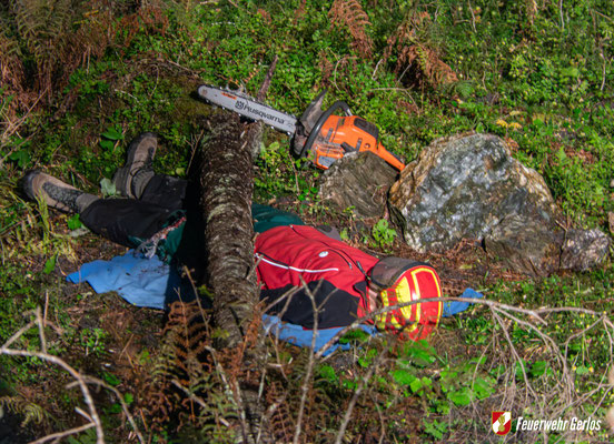 einem Baum eingeklemmt aufgefunden – mit schweren Schnittverletzungen an Oberschenkel und Hand.