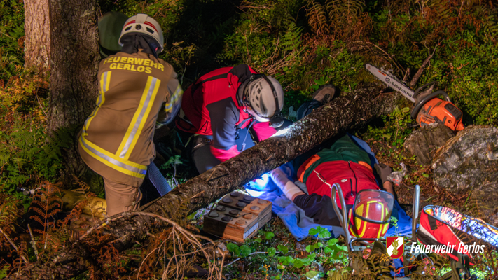 Am 10. Oktober gegen 19:00 Uhr ging bei der Leitstelle Tirol ein Notruf eines Forstmitarbeiters des Maschinenring Schwaz ein. Gemeldet wurde ein schwerer Forstunfall im Bereich der Langlaufloipe Richtung Schönachtal, auf Höhe der Jörgleralm.